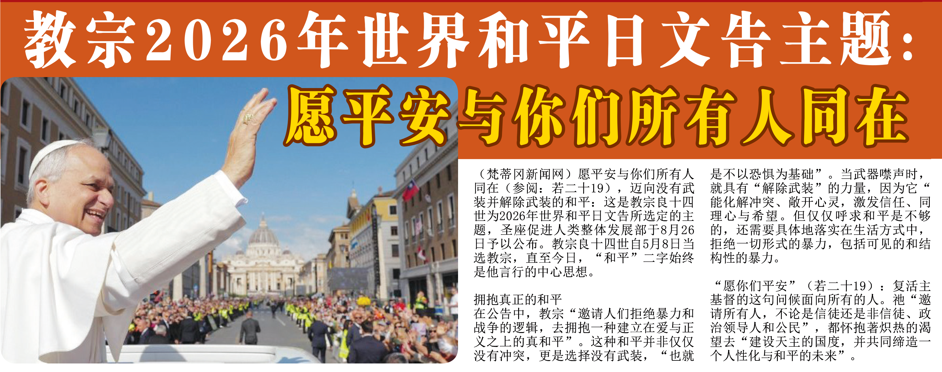 教宗 2026 年世界和平日文告主题: 愿平安与你们所有人同在
