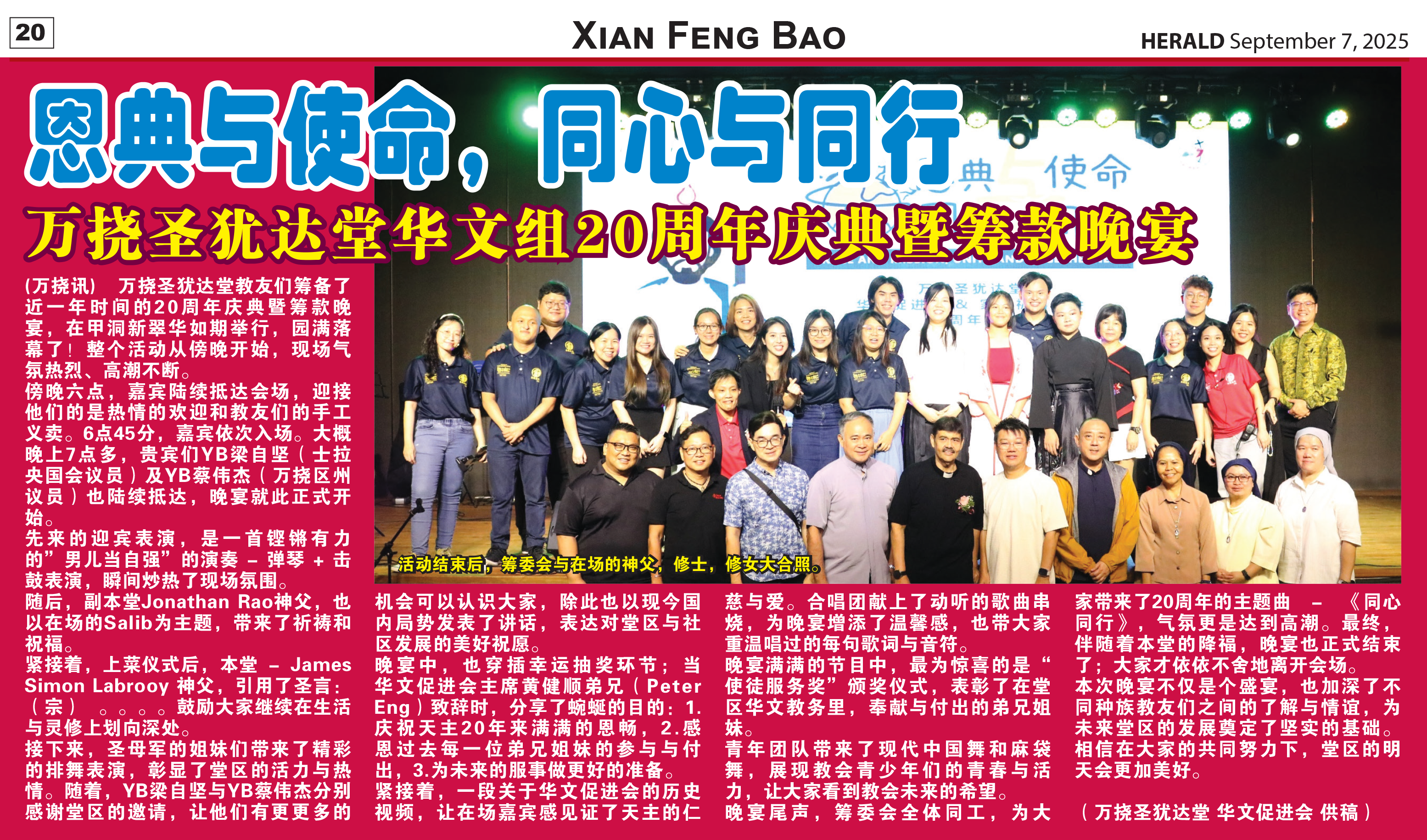 万挠圣犹达堂华文组 20周年庆典暨筹款晚宴