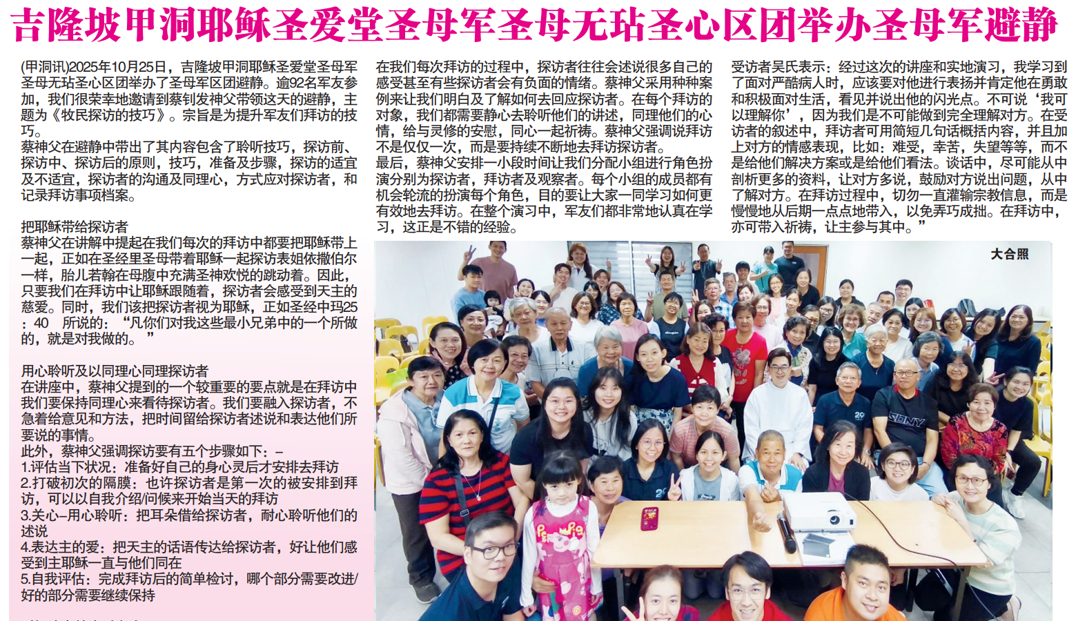 圣母无玷圣心区团举办圣母军避静