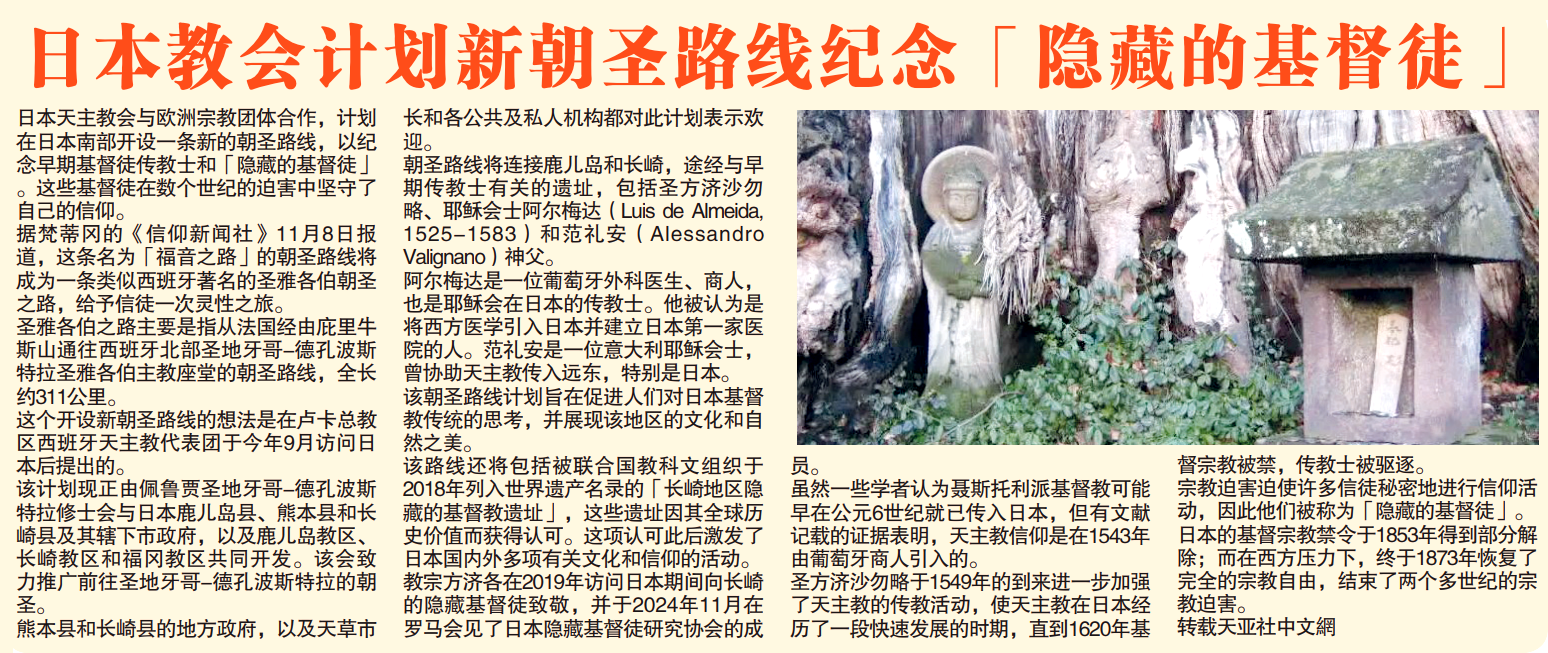 日本教会计划新朝圣路线纪念「隐藏的基督徒」