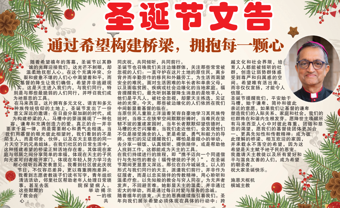 施恩天枢机 – 2025圣诞文告:通过希望构建桥梁,拥抱每一颗心。